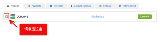 2、点击 Products 标签中 DOMAINS 前面的【+号】,展开域名列表。