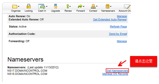4、点击按钮后打开新页面,找到 Nameservers 模块,并点击【Set Nameservers】。