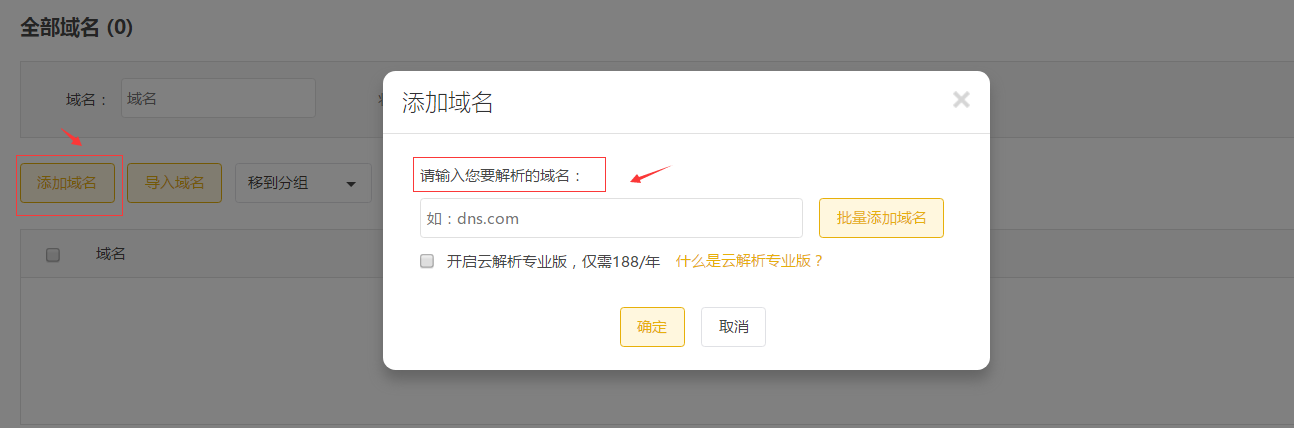 5、在弹出层的输入框中填写您的域名 DNS 服务器地址,点击【OK】。
